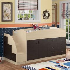 Компактный и функциональный детский уголок "Дюймовочка-4" объединяет большое удобное спальное место и множество мест для размещения и хранения разнообразных вещей. Такой уголок экономит пространство в детской комнате. Кровать подойдет детям от 1 года до 18 лет.