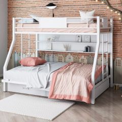 Конструкция кровати предусматривает два спальных места размером: 90*190 см - верхнее, 120*190 см - нижнее. Верхнее спальное место защищено бортиками. Прочную лестницу с широкими ступенями можно установить справа или слева.