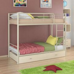 Материал каркаса: стальная труба. Все металлические элементы кровати покрыты износоустойчивой полимерной порошковой краской без запаха. Ступени лестницы из ЛДСП. Двухъярусную кровать можно собирать и разбирать неограниченное количество раз, и от этого она не потеряет в прочности и качестве. Гарантия производителя: 18 мес.